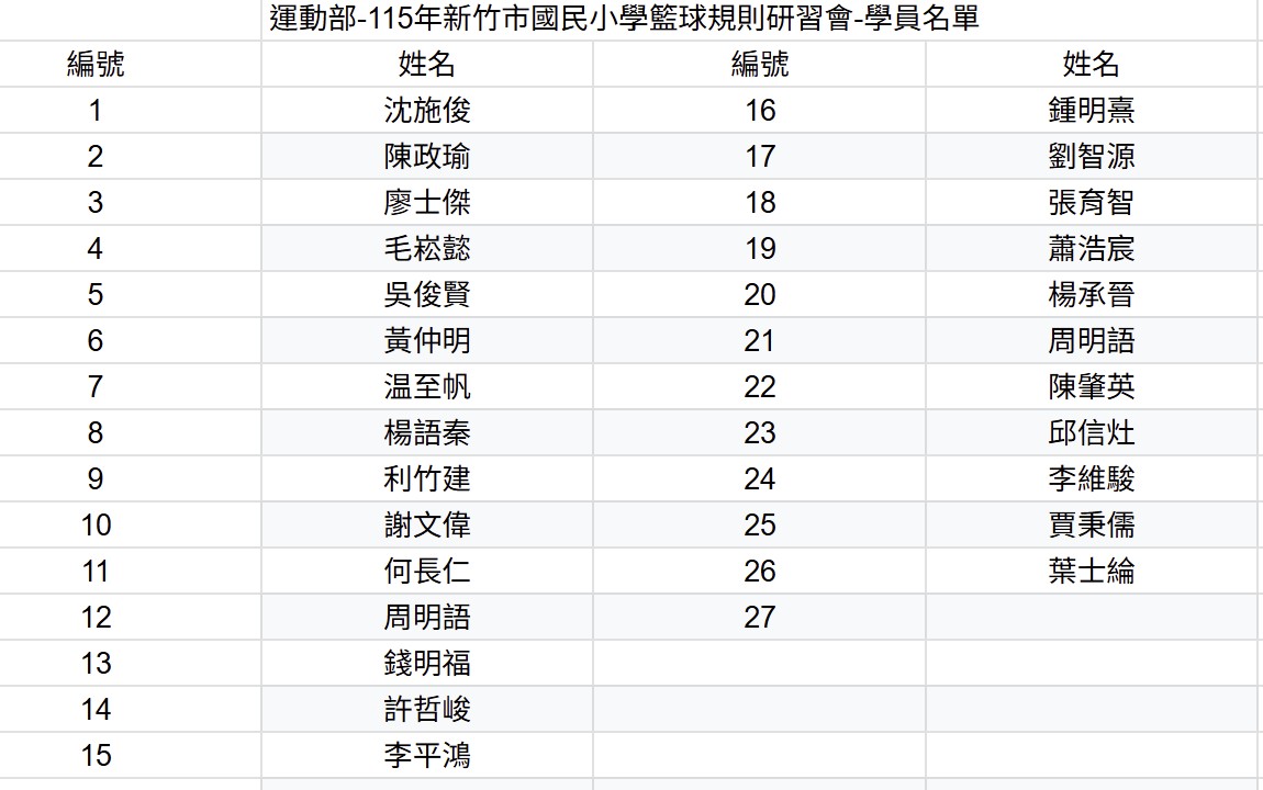 運動部115年新竹市國民小學籃球規則研習會